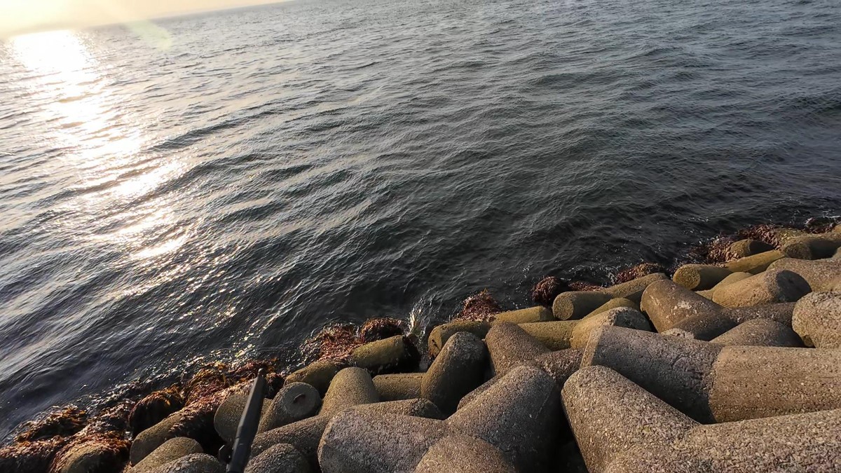 17時半前には釣り場の貝塚人工島沖向きテトラ帯に到着した。